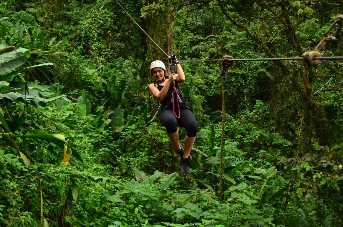 One of the main attractions in Fortuna is to take a ZIP LINE Tour. You will enjoy 10 cables with 14 different platforms and 50mts high rappel where you can see the impressive Canyon of the Arenal River and the extraordinary flora and fauna of the rain forest. You will have the opportunity to see the three kinds of monkeys that live in this zone, toucans, hummingbird and sloths.
